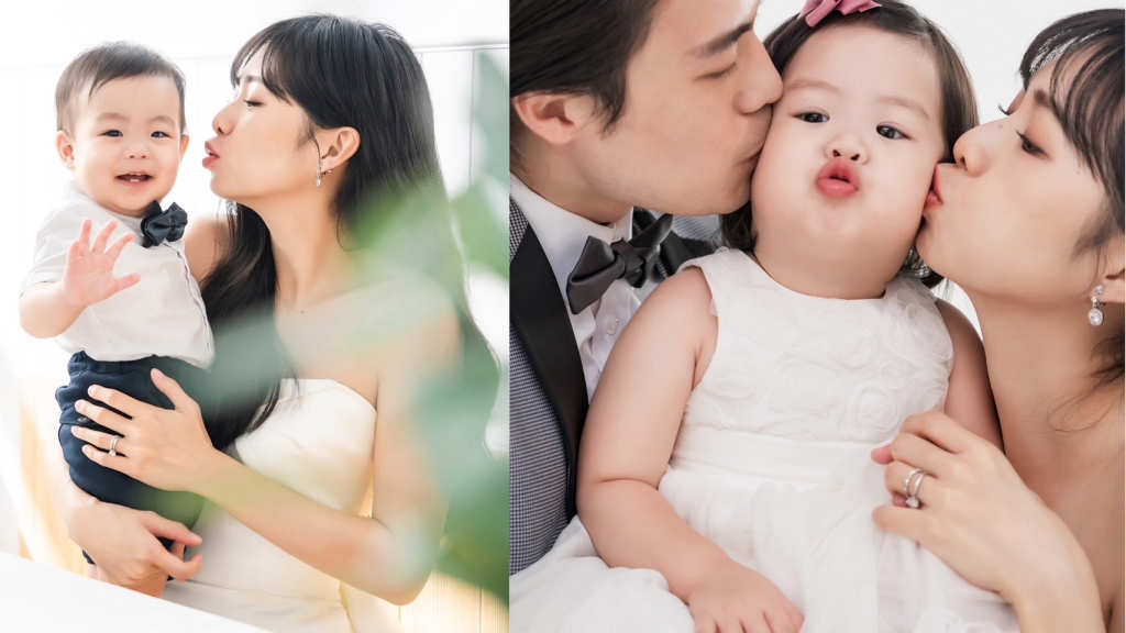 她透露總共 逛了 5 間婚紗店,試穿上身大約 30 件,前後耗時近 3 個月,最後才定案 Grace Kelly 婚紗。 日前她和老公拍攝婚紗照,心想必須拍到一家四口大合照,沒想到從早打理 2 個小孩已耗掉大半精力,到了攝影棚現場,2 歲半女兒小蘿蔔太活潑,即使她已特地出動媽媽、姊姊、妹妹到場助陣,依然難以控制,最後發現要完美湊好 4 人合體實在太難。