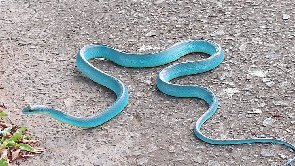 FB社團「野生蛇相」時常分享各式活體紀錄,31日有網友發文曬出多張照片及影音,只見柏油路與面與翠綠草叢的交界處,1條小蛇正抬首向前蜿蜒爬行,但顏色卻與常見的蛇類大相逕庭,透出極度完美的湖水藍光澤,在白天的明亮光線照耀之下,身軀還帶有微微透明感的錯覺,從未見過的奇景讓原PO心中升起滿滿的疑惑,忍不住表示「請問這是什麼蛇?」。
