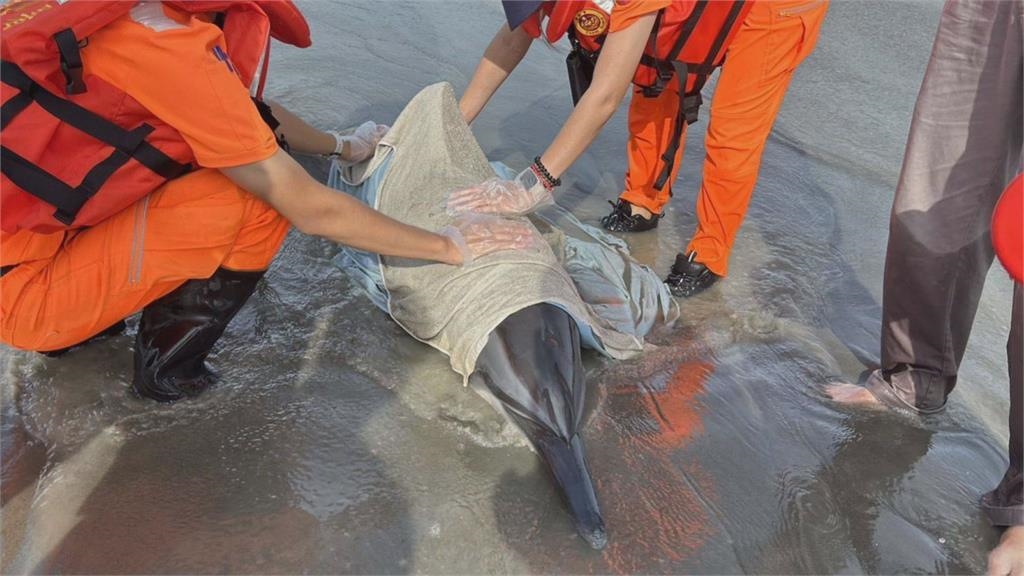 【原文出處】:瓶鼻海豚擱淺台南黃金海岸 民眾合力抬入海又被沖上岸