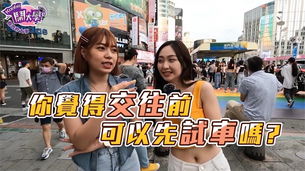 隨著社會對於感情的觀念逐漸開放,親密行為不再是難以啟齒的話題,除了能公開探討外,愈來愈多男女可以接受婚前性行為,甚至是確認關係前就可以嘗試,YouTube頻道「Koobii鬧大學」日前到西門町進行街訪,隨機採訪年輕人,詢問他們對「交往前先試車」的看法,一位女生的答案令兩名主持人相當意外。