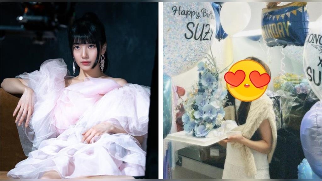 從秀智曬出的照片中,能看到她被藍色、紫色、白色的氣球包圍,畫面相當夢幻,手上捧著鮮花,瞪大眼睛抬頭望著這一切,露出不可置信的表情,甚至連嘴巴也合不攏,讓人看了忍不住嘴角上揚,被秀智可愛的一面給逗樂,仔細一看,還能發現氣球上印著大大的「Happy Birthday Suzy!」,滿滿用心盡在不言中。