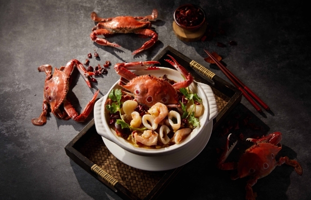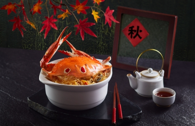 還有「新奇士橙蒸花蟹」、「黃咖哩三點蟹」及可愛螃蟹造型的「蟹肉鮮蝦餃」等菜色等著民眾來品嚐;福容大飯店台北一館-福粵樓港式飲茶由蔡長庚行政主廚推出以秘製金黃色湯底烹煮的「金湯香麻萬里蟹」,恰到好處的酸香麻辣感,嗅覺與味覺的雙重享受,讓人食指大動;台北花園大酒店-翠庭中餐廳推出多款秋蟹料理,其中「橫行踏雪尋梅花萬里花蟹」採用鮮甜萬里花蟹為主角,與雞蛋、主廚特製梅子醬等共同蒸製而成,酸甜醬汁與細緻蟹肉的結合,令人回味無窮;台北萬豪酒店-宴客樓獨門「冰霧潮式凍花蟹」以清蒸萬里花蟹,再與老母雞港式上湯及螃蟹精華浸泡冰鎮,更突顯花蟹的清鮮甜美。