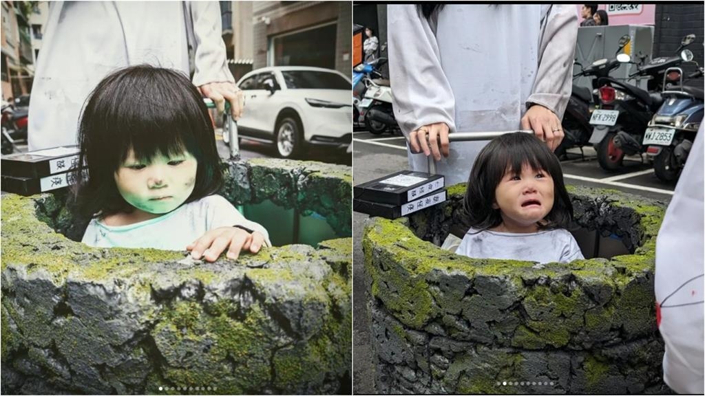 該名爸爸在臉書「爆廢公社二館」發文表示,「萬聖節就是考驗父母手作能力的時候」並曬出萬聖節系列圖片,只見媽媽化身為貞子,推著古井中的「小小貞子」出場,一起現身板橋「府中搞什麼鬼」萬聖節現場,媽媽留著一頭長髮擋住真面目,原汁還原電影裡貞子的恐怖氣氛,女兒臉上還用心的弄成滿臉髒污,就像是剛從井裡爬出來般,旁邊還不忘放上捲《貞子》錄影帶,井內打出詭異綠光,製作得相當用心逼真。