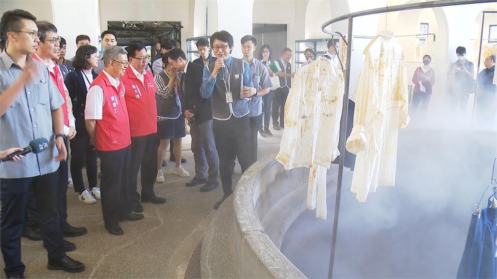 行政院長陳建仁、副院長鄭文燦,站在蒸氣繚繞的圓形浴池前,來到台北鐵路機廠,參觀日治時期興建的員工澡堂。