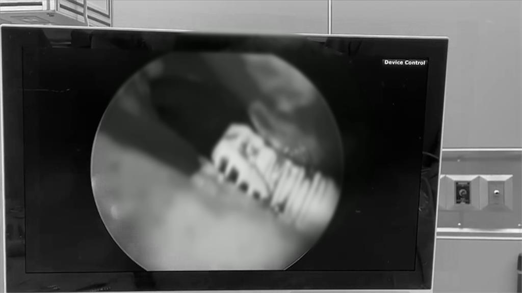 台中大里仁愛醫院耳鼻喉科醫師張耕閤:「我們可以用內視鏡的方式,從鼻子用微創的方法把植牙的個體取出。」
