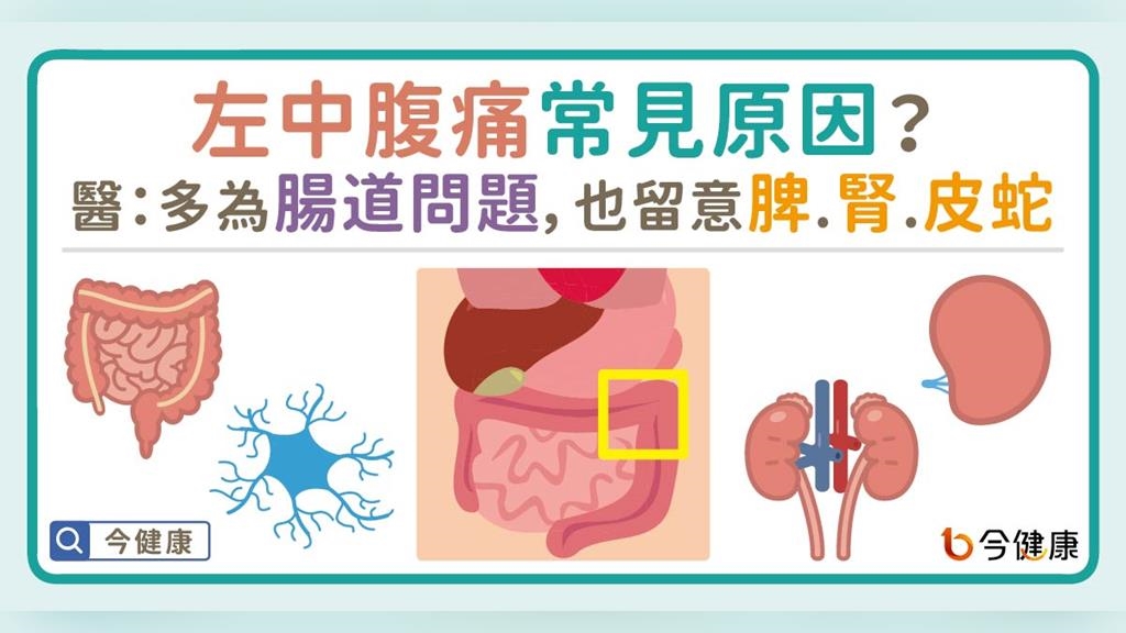 王威傑醫師指出,左中腹所含有的器官,包括了大腸、小腸、脾臟、腎臟、輸尿管等,出現疼痛時可能因腸炎、脹氣、便祕、脾臟阻塞、腎積水、泌尿系統結石等所引起。其他非臟器所引起的也包括帶狀皰疹的神經痛、肌肉筋膜或肋骨的肋骨肋間發炎所引起的疼痛等。