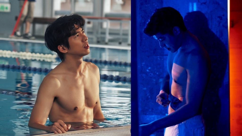 影集《美食無間》除話題討論度超高的美食,導演奚岳隆找傅孟柏、王柏傑演出,沒忘記觀眾福利,最新一集就安排雙帥齊秀可口好身材!傅孟柏飾演的朱坡為了追擊目標,將穿可愛泳褲半裸上陣;王柏傑飾演的殺手則有裸身縫傷口戲碼,腹肌在幽暗光線下若隱若現,大展MAN味。 《美食無間》每集吃好吃滿,實現「餐桌上只有美食,沒有公事」的同時,角色也開始面對真實世界,第六集朱坡為調查胡仲魁的生死,跟隨目標前往游泳池,被迫照指示換穿泳褲下水游泳,精壯身材一覽無遺,導演回憶:「當天劇組停機等孟柏半小時,讓他做伏地挺身,胸肌和腹肌都相當挺立,變得更明顯!」傅孟柏表示平時有健身習慣,維持得不錯,裸身不是問題,倒是泳池地板很滑,朱坡又愛用憤怒暴衝方式追逐對方,好幾次差點滑倒。有趣的是,當天他穿的是一件印有香蕉圖案的可愛泳褲,意外製造反差萌。