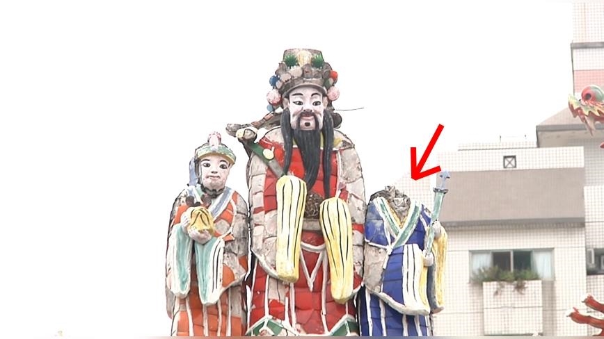 這裡是彰化鄭成功廟,仔細看在屋頂上有三尊神像,其中一尊斷頭,引發路過民眾議論紛紛。有網友說,不敢相信自己的眼睛,因為神尊斷頭怎麼看怎麼怪,民俗老師說,這三尊也稱財子壽,就在屋脊的正中央,也算是鄭成功廟的門面。只是為何抱劍的財星會斷頭呢?,廟方說是被地震震斷的。