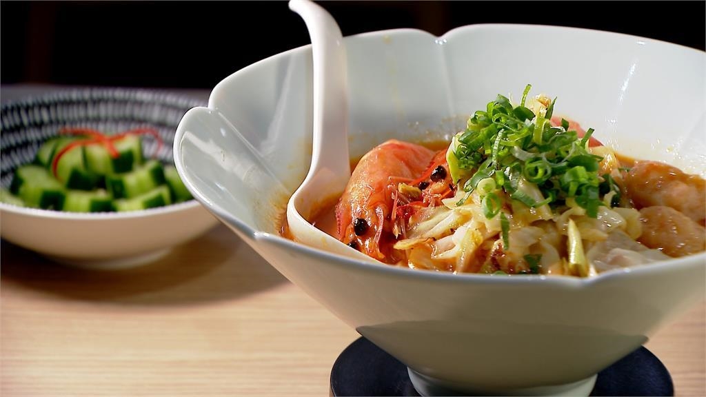 日式拉麵也能結合中式料理手法,台北有拉麵店,將老虎蝦烘烤八小時,研磨成粉製作的蝦湯,點綴廣東菜常見的蝦滑、鮮蝦雲吞,味道如何一起去品嘗。
