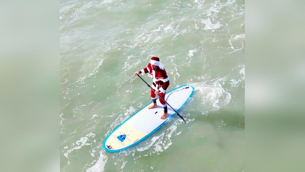 佛羅里達可可海灘耶老衝浪日 衝浪客化身耶誕老人、小精靈下海同樂