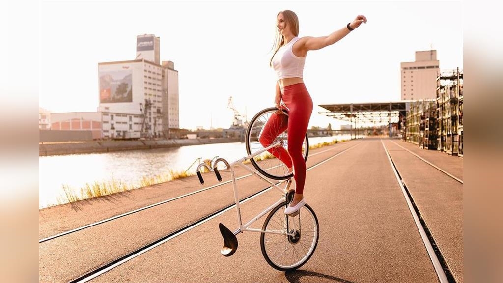 反著騎、站著騎都OK! 德國花式自行車女車神秀高難度絕技