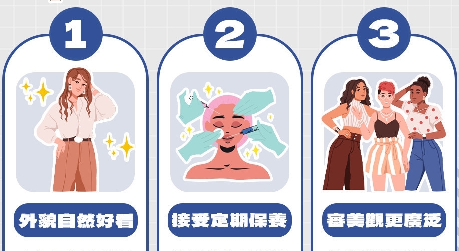 洪唯倫醫師表示,忙碌的生活型態,間接促使大眾逐漸接受定期進廠保養的觀念,以及社群媒體影響力讓民眾更廣泛的接收不同的審美資訊,美的多樣性以及內心嚮往的容貌樣態,也成為民眾對於醫美逐漸開放的關鍵影響因素。