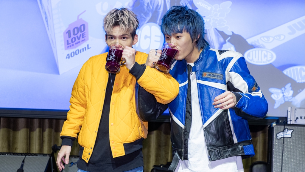 他高中時期的作品〈Paradise〉還讓圈內音樂人金曲歌王瘦子E.SO及高爾宣都轉發推薦,其偶像Karencici更因為他主動傳自薦簡訊而點頭合作!而創作才華過人的Juice Boy在見面會上也一展現場歌唱實力演唱新歌〈沒資格愛你〉,穩健台風讓全場驚艷之餘,其好人緣也讓圈內好友及同門師兄姐包括Karencici、韓菲、原子邦尼、Dena、婁峻碩等歌手來個眾星拱月「獻聲」錄製VCR祝福,好友製作人派偉俊更獻上兩杯火龍綜合果汁現場直接「乾」起交杯酒展現兄弟情誼,有著好交情的兩人曝彼此在音樂上都很「龜毛」,跟Juice Boy交情甚篤的派偉俊特地來站台,派偉俊透露跨年夜有跑去找Juice Boy陪他過,結果兩人意外爆出彼此「同床」怪癖!