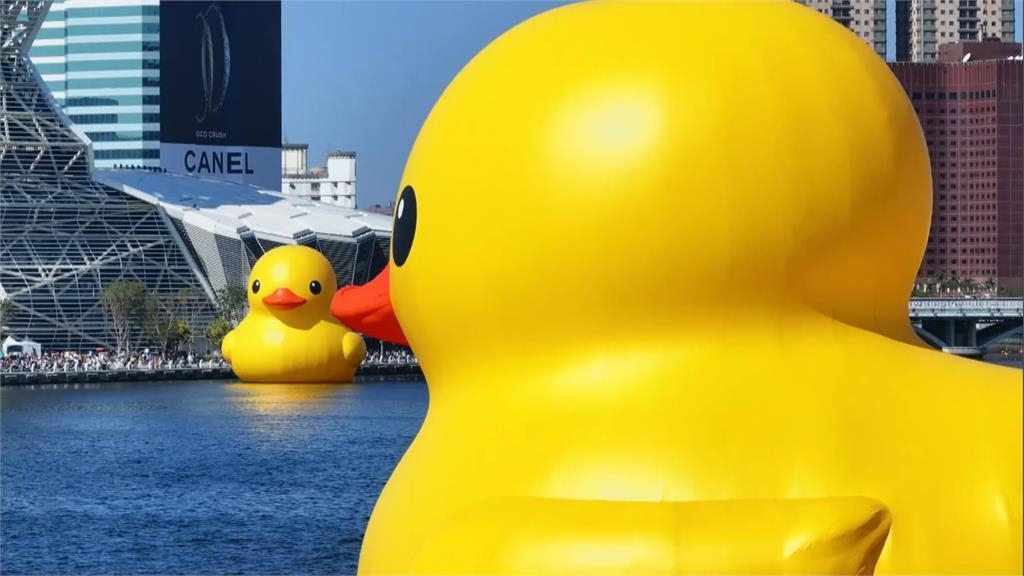 LIVE/限時10分鐘雙鴨KISS放閃來了! 情人節限定黃色小鴨遊港趣