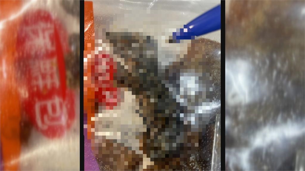 過年期間,民眾狂嗑零食,台南有民眾打開這包豆乾,正準備要大塊朵頤,卻突然看到裏頭有一塊不像豆乾,有點像雞腳形狀的東西,仔細一瞧,上頭還有毛,疑似是小老鼠的乾屍,差點沒吐出來。民眾立即把豆乾用釘書機封好,向台南市議員投訴。