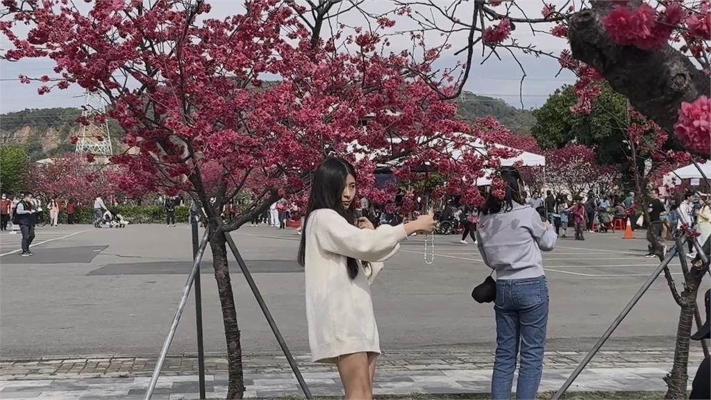 全台處處花團錦簇!中部地區的櫻花也盛開,像是有「最美派出所」之稱的台中市泰安派出所,四周圍60多株的八重櫻大鳴大放,禮拜天吸引全台遊客,專程來賞櫻。