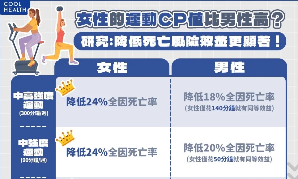 .資料來源:Sex Differences in Association of Physical Activity With All-Cause and Cardiovascular Mortality