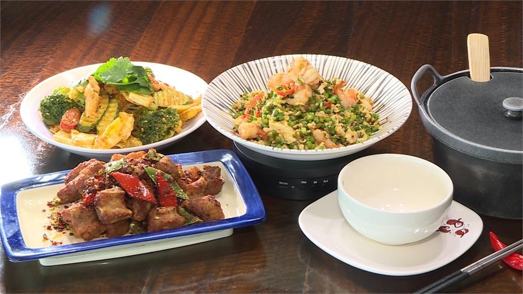 主廚張業延:「我們用泡的話,讓它用低溫的話,然後讓它慢慢的熟,然後在最嫩的時候,讓它去做冰鎮,然後把它瀝乾去做涼拌。」還有鹹香的椒香豆豉排,吃來外脆內嫩,川菜結合當季食材,品嘗春天的味道。
