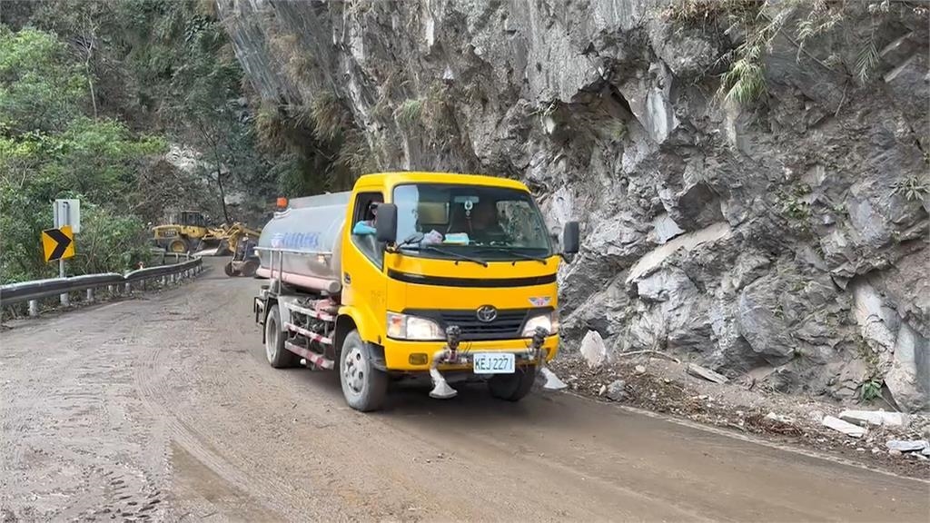 從東西橫貫公路牌樓,再往裡頭走,大型機具,馬不停蹄排除障礙物,灑水車來來往往,道路滿是泥濘,強震後,中橫台八線將近190公里的現況,讓人難以想像,這裡曾是山明水秀的花蓮。