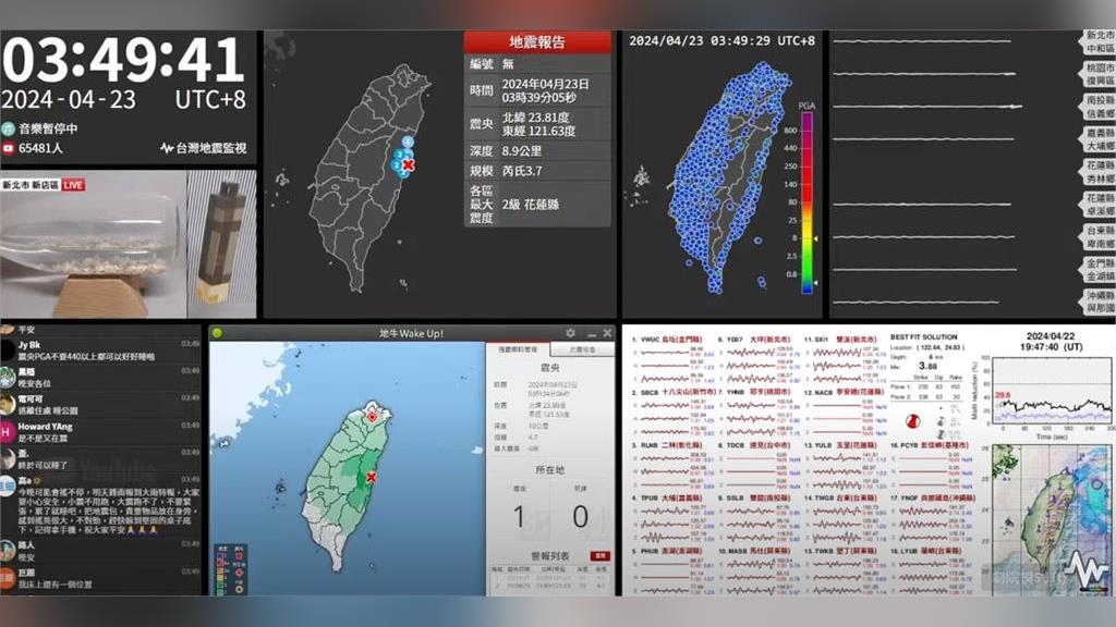 生活中心/李明融報導花蓮縣23日凌晨2點連續發生2起規模6以上強震,且不斷有小規模餘震發生,距本月3日花蓮強震也不到一個月時間,不少人擔心恐再有地震發生。許多人已經不管明天是否還要上班上課,紛紛打開地震監控系統直播,一度湧入超過9萬人在線觀看。