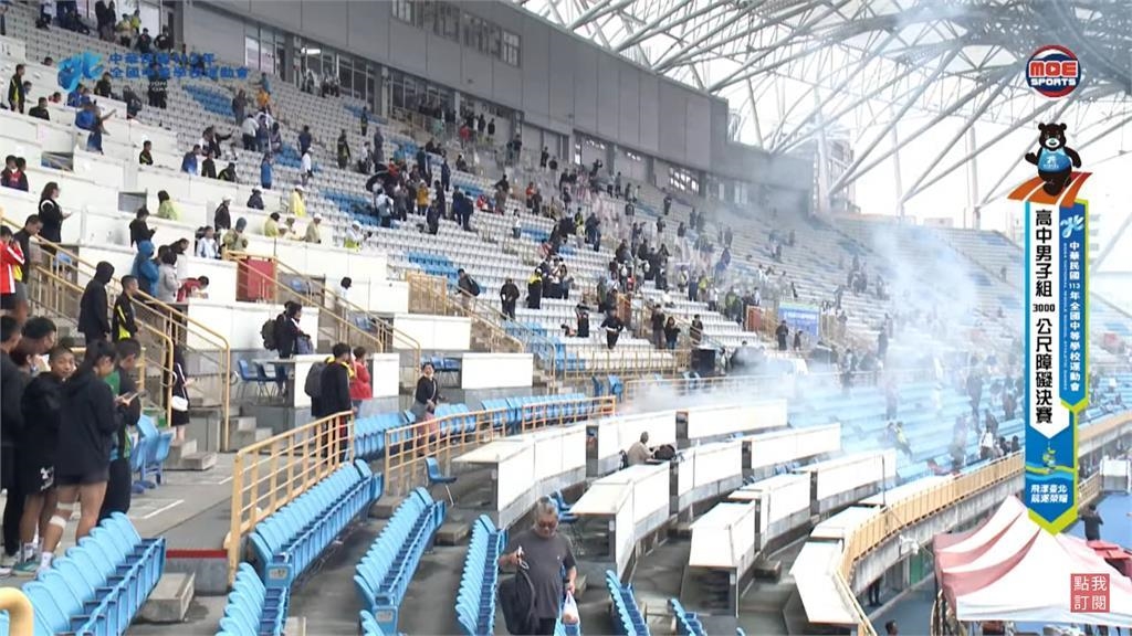 全中運賽事如火如荼進行中,其中田徑各項目預賽、準決賽、決賽今(24)日下午於台北田徑場登場,未料進行高中男子組3000公尺障礙決賽時,觀眾席疑電線走火,現場能清楚看火光閃爍,並冒出陣陣白煙,嚇得觀眾紛紛起身躲避。