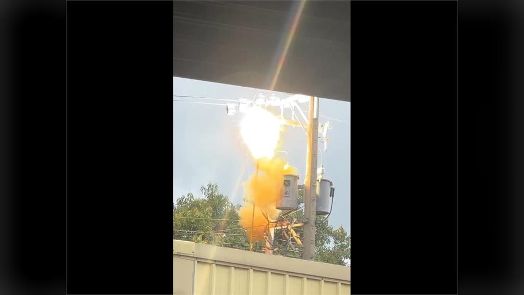 台電人員,進行搶修,撥動電線桿上的變壓器設備,忽然間,轟的一聲,一團火球,半空中竄燒。轟然巨響,冒出火花,火焰四濺,當時變壓器下方,一名台電人員,來不及閃,遭烈焰灼傷,救護車到場,緊急將人送醫。