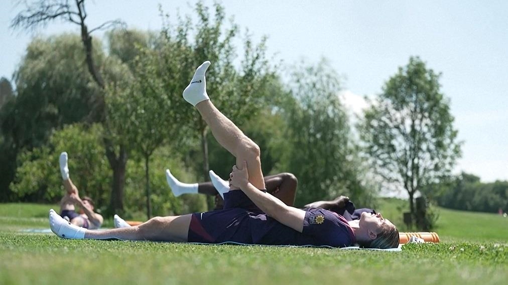 英格蘭今天不練球,改做瑜珈。只見平時經常跑動的選手們,靜下心來躺在瑜伽墊上做日光浴,放鬆身心靈。英格蘭在歐國盃小組賽,以C組第一之姿晉級到16強,不過實際表現卻讓球迷相當不滿意,三場比賽1勝2和,而且只進兩球,下個階段得發揮應有水準才行。