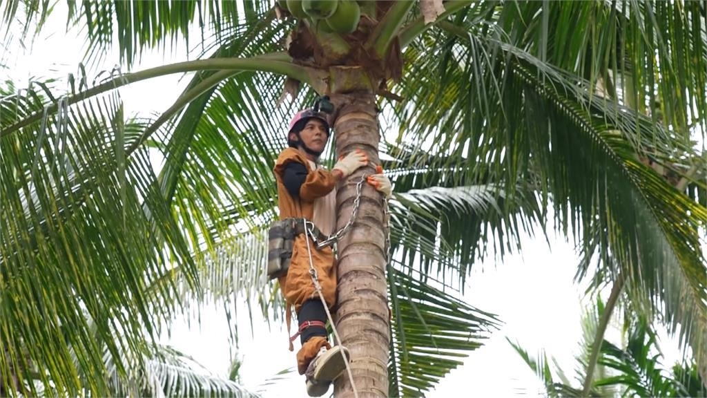 阿翔挑戰12公尺高採收椰子 踩空打滑瞬間嚇壞眾人