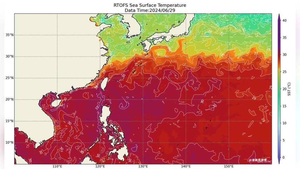 對此,中央氣象署預報員曾昭誠說明,因受太平洋高壓影響,台灣附近海域雲量少,海溫約在30度左右,較過去平均值略高。這主要是因為太平洋高壓對海域的加熱效果明顯。曾昭誠強調,根據目前的海溫條件,今年將進入反聖嬰環境,颱風生成數量將正常偏少,而溫度則會正常偏高。