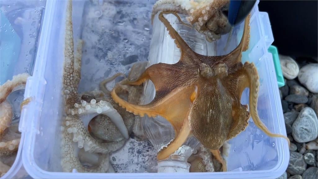 民視記者趙永博:「花蓮的七星潭是花蓮的知名景點,除了鄰近太平洋之外,也能看到中央山脈美麗的山景,吸引不少在地的遊客,到花蓮這一塊地方來玩,那同時這邊也是一個釣魚的聖地,可以看到我們不少釣客,都能在這邊享受垂釣的樂趣。」好幾隻小章魚,在塑膠盒中不停扭動著。正值夏季的七星潭,因為浪小,章魚數量也會比較多。釣客說,運氣好的話,2小時內就能釣30到40隻的章魚。在地釣客梁先生:「下端再一個快速的別針,再加上布捲,這樣才能甩的比較遠,然後它沉到海底之後,章魚來到,你拉起來比較有感覺。」