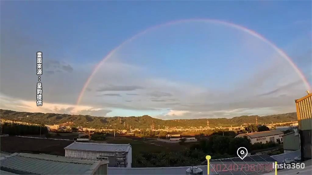 雨過天青,出現彩虹,民眾在路邊目擊,驚呼連連,8日傍晚,一場雷陣雨過後,中部地區都出現彩虹高掛天空的景象,其中彰化有民眾,發現彩虹蹤跡,還架設了縮時攝影,紀錄下彩虹的誕生。