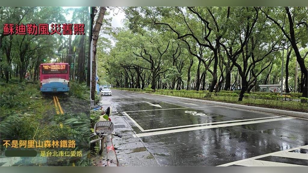 網傳北市仁愛路「路樹整排倒」變叢林 北市府澄清:假的!蘇迪勒舊照