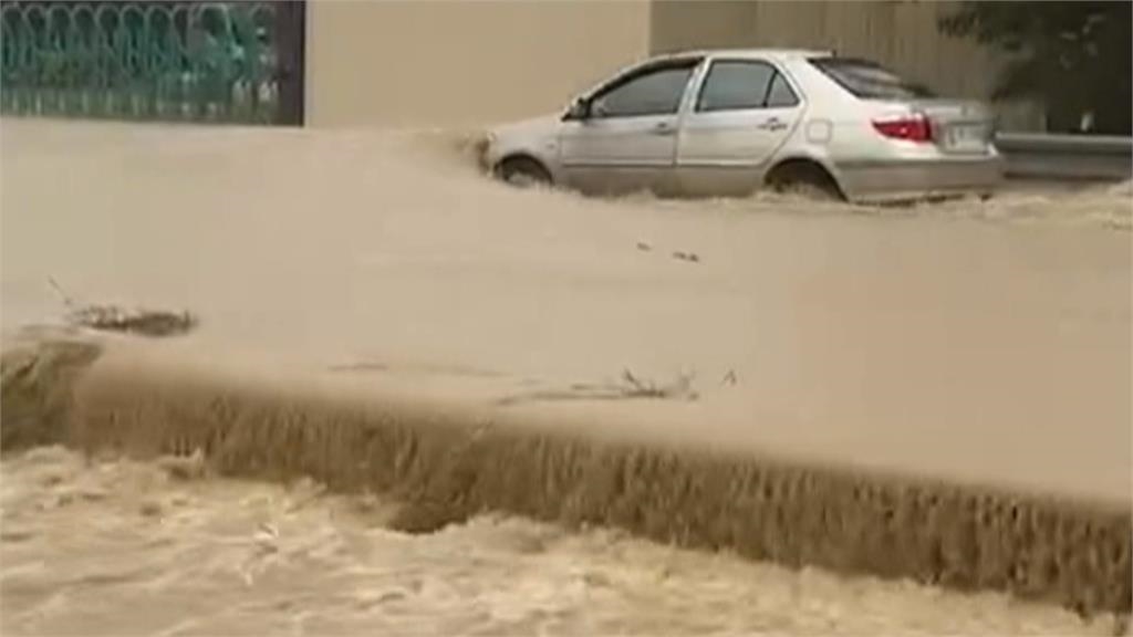 幸好這兩車三人最後都平安脫困,但愛車已成了泡水車。雖然馬路變水路,不過仍有民眾開車經過,冒險測試起車輛性能,硬是要把汽車當船開,猶如陸上行舟。