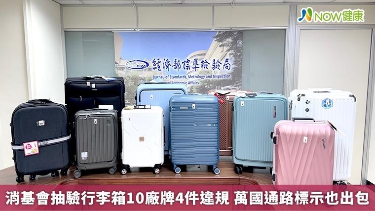 【NOW健康 陳郁茹/台北報導】暑假正值旅遊旺季,許多民眾會拖著行李箱出國,但若遇到箱子破裂、輪子脫落等問題恐相當掃興!經濟部標準檢驗局與消基會合作,抽驗市面10家廠牌行李箱,結果有4件不合格,其中有1件價值2390元行李箱在落下試驗後箱體破裂;而知名品牌「萬國通路」的產品也出現中文標示違規問題。