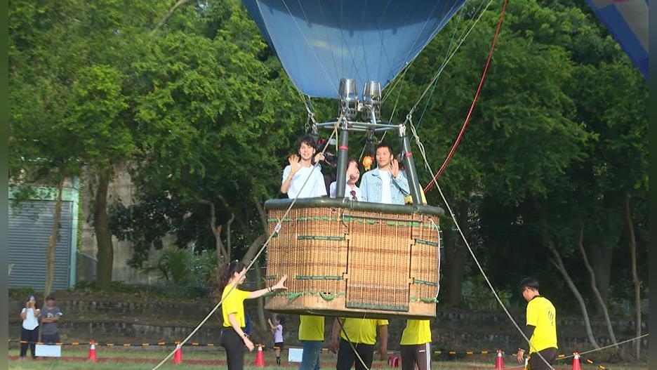 盧秀燕牽著李洋、林郁婷,三人共搭一個熱氣球,三人升上天際,欣賞大甲溪畔美景!林郁婷與李洋,都是第一次搭乘熱氣球,林郁婷直說很好玩,李洋就比較緊張,不過,他說這次的驚嚇體驗,對打球可能會有幫助!
