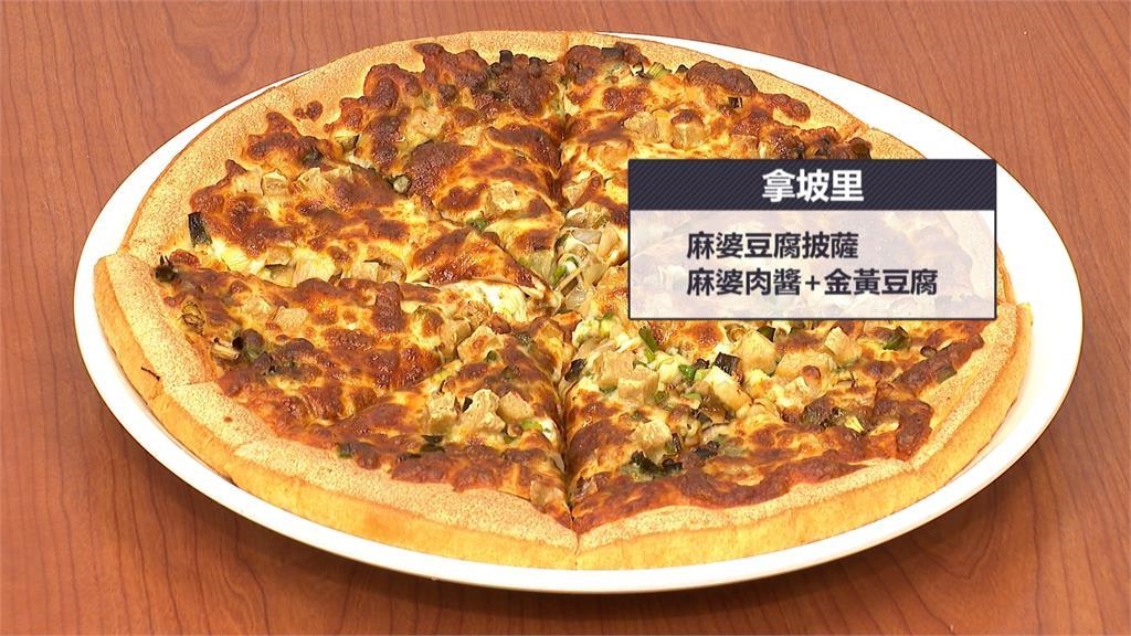 民視記者陳守溱:「披薩業者和知名在地品牌,聯名推出,全新的麻婆豆腐口味披薩,讓消費者看到直呼,好想吃吃看。」