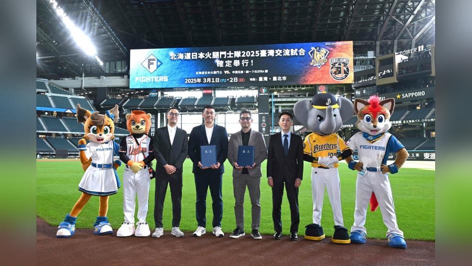NPB日本職棒北海道日本火腿鬥士隊,明年確定將來台進行交流賽,今日(9月28日)在火腿火腿鬥士主場Es Con Filed舉行「北海道日本火腿鬥士隊2025臺灣交流試合」簽約儀式,將於明年3月1、2日分別和中信兄弟及統一獅交手。比賽地點尚未公布,但可望於台北大巨蛋進行。