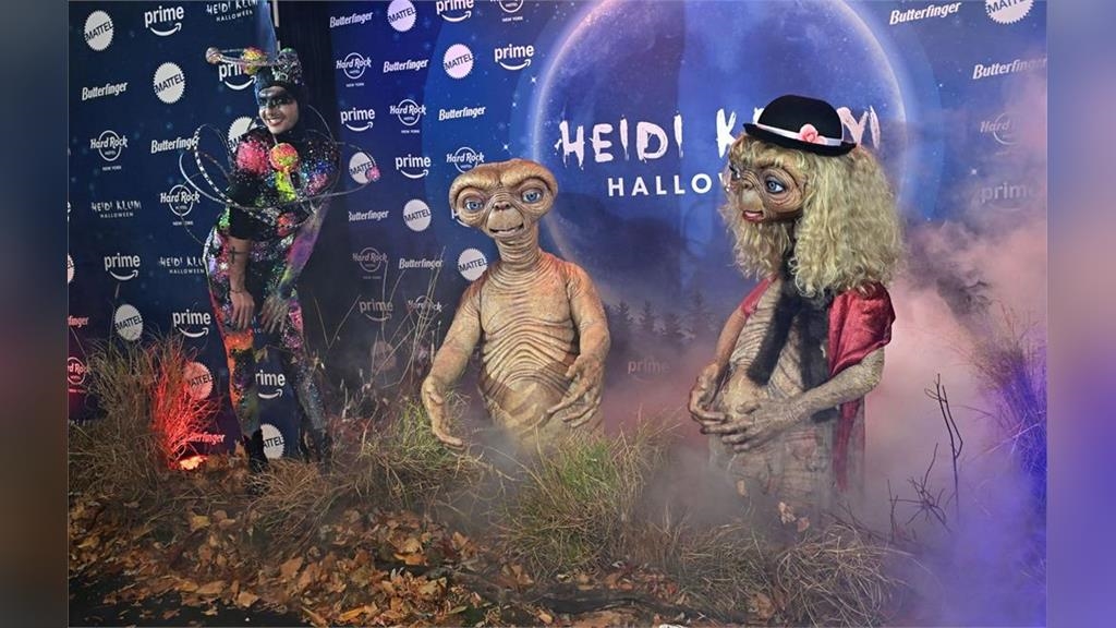 一年一度萬聖節,當然要迎來超級名模海蒂克隆(Heidi Klum)的萬聖節搞怪造型,繼前年的蚯蚓(蠕蟲)、去年的孔雀,今年終於走回大眾熟悉的影劇哏,跟老公一起扮E.T.外星人。