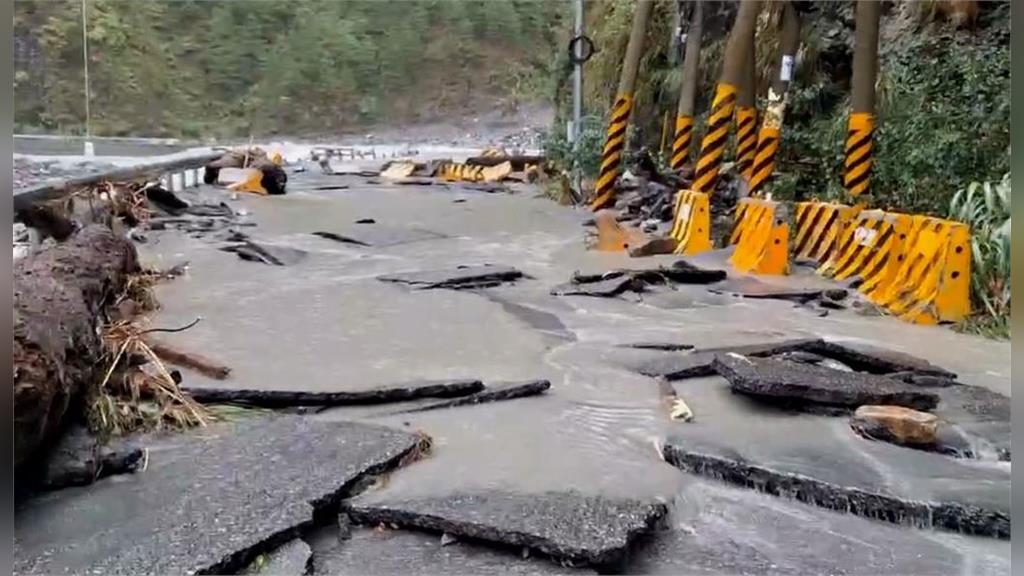 除了台鐵一度中斷。蘇花路廊,台9線、台9丁線,溪水暴漲,大片土石崩落,滿地泥濘,工務人員盡速搶修,東澳到和仁路段,週五上午九點,解除預警性封閉。但和仁到崇德路段,得等到2號中午12點,才會搶通。南澳工務段段長劉錦龍:「因為惠德隧道目前它的水流,還是一直都從山上下來,所以這個如果有比較大的水流,再降雨的話,那如果有其他狀況的話,那這(搶通)時間我們要另外在評估。」另外,台八線中橫便道,土石泥流不斷,沿線電桿、電線遭傾倒的路樹壓斷。還有,台11線43.5公里處,新社路段也很慘,路基被大浪掏空約50公尺,只能單線通車,公路局擺放交通錐,提醒用路人注意安全。歷經大地震的花蓮,如今又遭遇颱風侵襲,多條道路中斷。幸好經過加緊趕工,鐵公路僅僅花了一天,就幾乎完全搶通。
