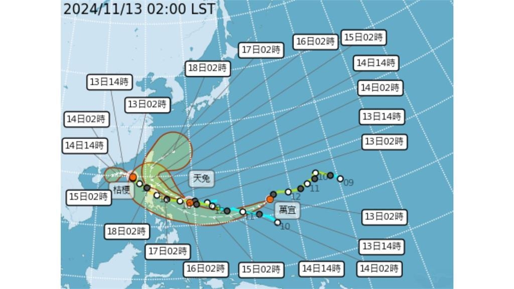 第25號颱風「天兔」,已在今(13)日確定生成。(圖/翻攝自中央氣象署)