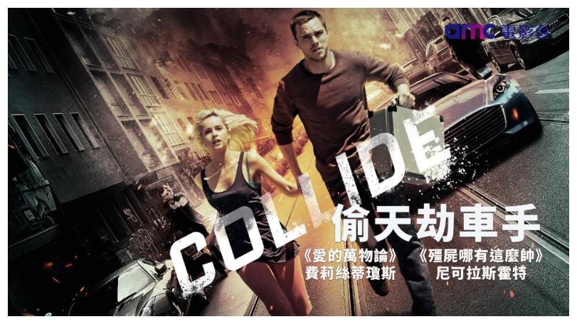amc電影台,今年11月,《辣個男人有點殺》主題單元,好萊塢巨星排排站,強檔一檔接一檔。11月16日星期六晚間九點即將播出由《瘋狂麥斯:憤怒道》、《五星饗魘》、《殭屍哪有這麼帥》英國男星尼可拉斯霍特(Nicholas Hoult),《愛瘋了》、《地獄》英國女星費莉絲蒂瓊斯(Felicity Jones)共同主演的動作鉅片《偷天劫車手》(Collide)。