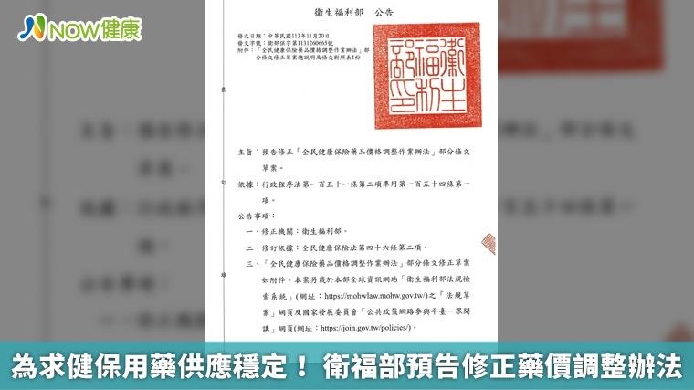 為求健保用藥供應穩定! 衛福部預告修正藥價調整辦法