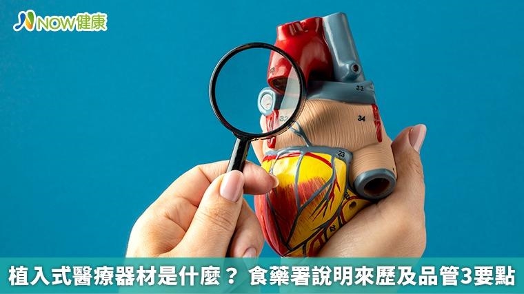 醫療器材的種類繁多,無論是一般的口罩、人工皮,或是植入體內的人工心臟、人工水晶體,都屬於醫療器材的範疇。根據食藥署表示,「植入式醫療器材」是一種透過手術方式植入人體,並且放置於人體自然腔道內、或直接替代上表皮或演表面,可持續置於人體30日以上,並得藉由外科或其他醫療方式取出之器材,都可稱為植入式醫療器材。