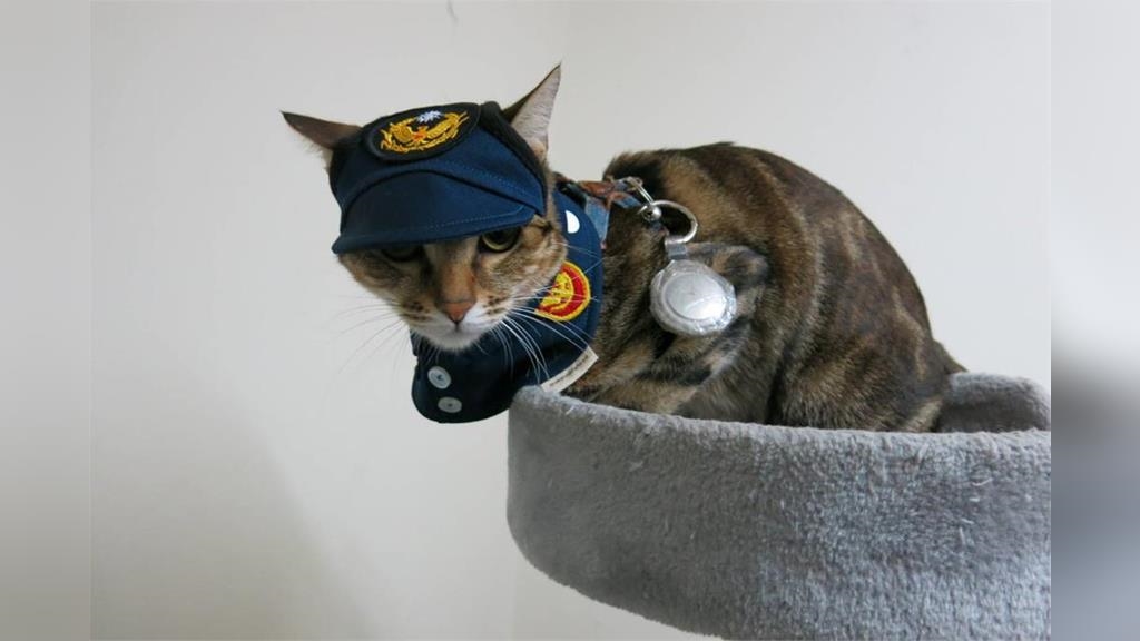 桃園市的〝景福派出所〞,也有了專屬吉祥物!去年9月,有民眾報案,一隻流浪小貓咪,鑽機車裡取暖,員警協助誘捕後,將貓帶回派出所照顧,取名「乖乖」。如今,小貓成長茁壯,警方也在今年聖誕節來臨前,宣布將小貓成為〝所貓〞,並送給牠一套專屬的「警察制服」。