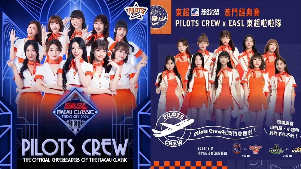 P. LEAGUE+桃園璞園領航猿將於12月11日迎來東超首度海外主場賽事,啦啦隊Pilots Crew也將隨隊一同出征,與東超合作成立澳門限定「Pilots Crew x EASL東超啦啦隊」,首次進軍國際舞台,將帶來最具代表性的空姐特色應援,展現台灣籃球文化的獨特魅力。