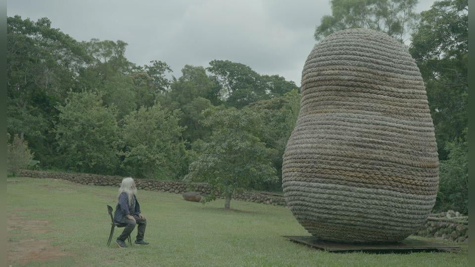 白髮蒼蒼、加上絡腮鬍,宛如武俠小說當中,深藏不露的武林高手,他是雕塑藝術家-康木祥,戴上手套,刷洗廢棄纜繩,用高壓水槍沖去髒汙,要讓這些看似無用的東西,能有新生命。用雙手將船纜一根根、一線線的纏繞,每一個扭動,每一次轉角,對康木祥來說都是極大的挑戰,煞費苦心從零打造,這座巨型公共雕塑「毛小孩」,就好像胎兒,一暝大一寸、慢慢成型,破繭而出,不但體現藝術家對環境永續的重視,更賦予新生命。