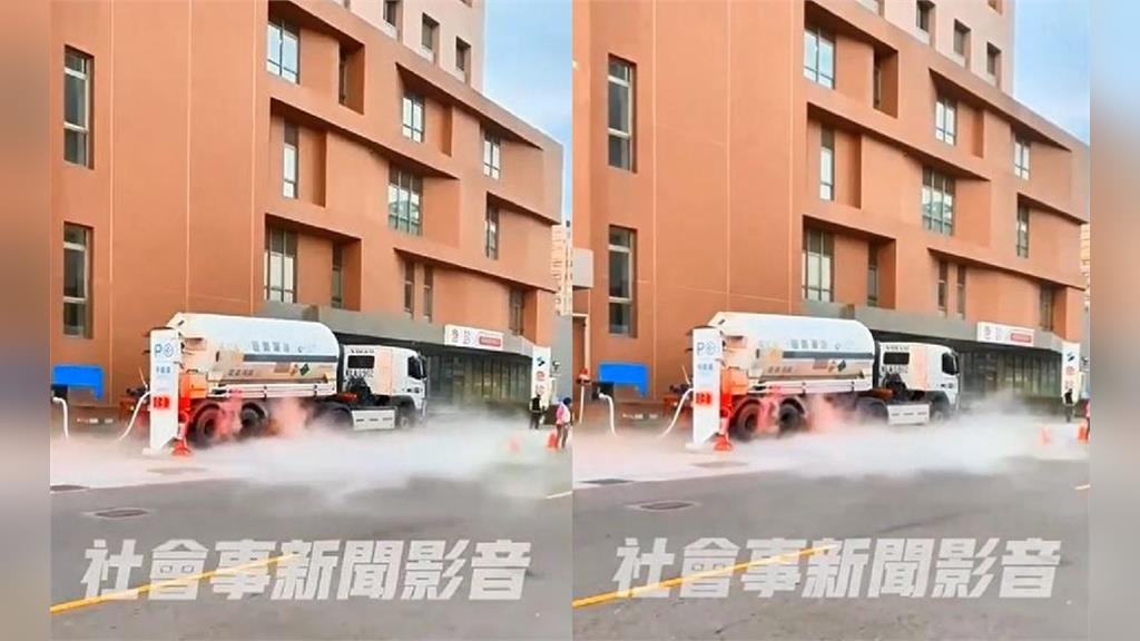 液化氧載運車停院外狂冒煙霧 烏日林新醫院說明了