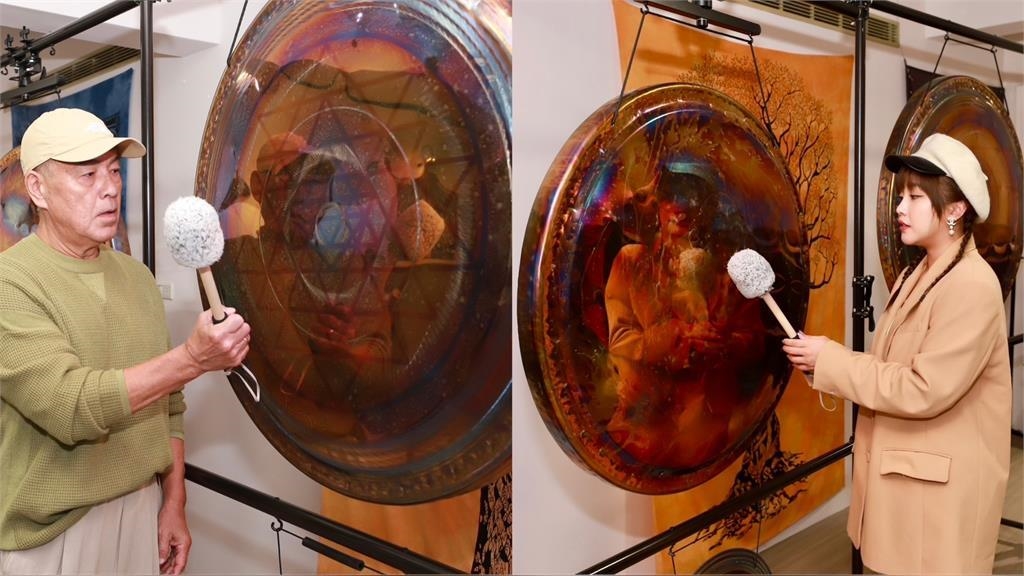 龍天翔(左)和賴慧如(右)都因為拍戲受傷一同體驗銅鑼饗宴,銅鑼師正在施作水晶缽。(圖/民視提供)
