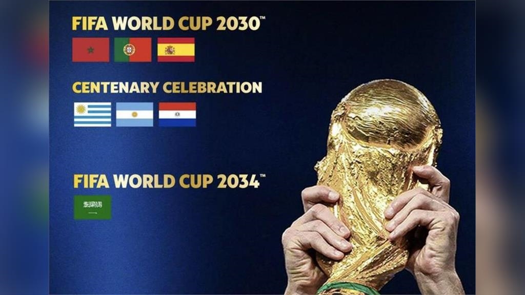 國際足總FIFA正式宣布,2034年男子世界盃足球賽的主辦國為沙烏地阿拉伯,而2030年世界盃,則由西班牙、葡萄牙和摩洛哥聯合舉辦。