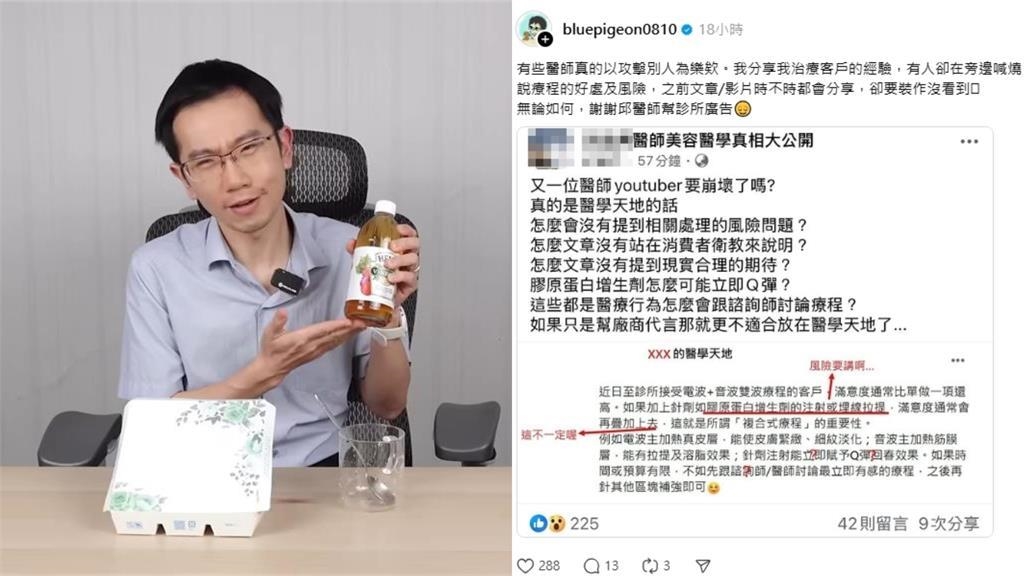 同業批蒼藍鴿「崩壞的醫師YouTuber」!本人回擊笑喊:謝謝幫診所廣告